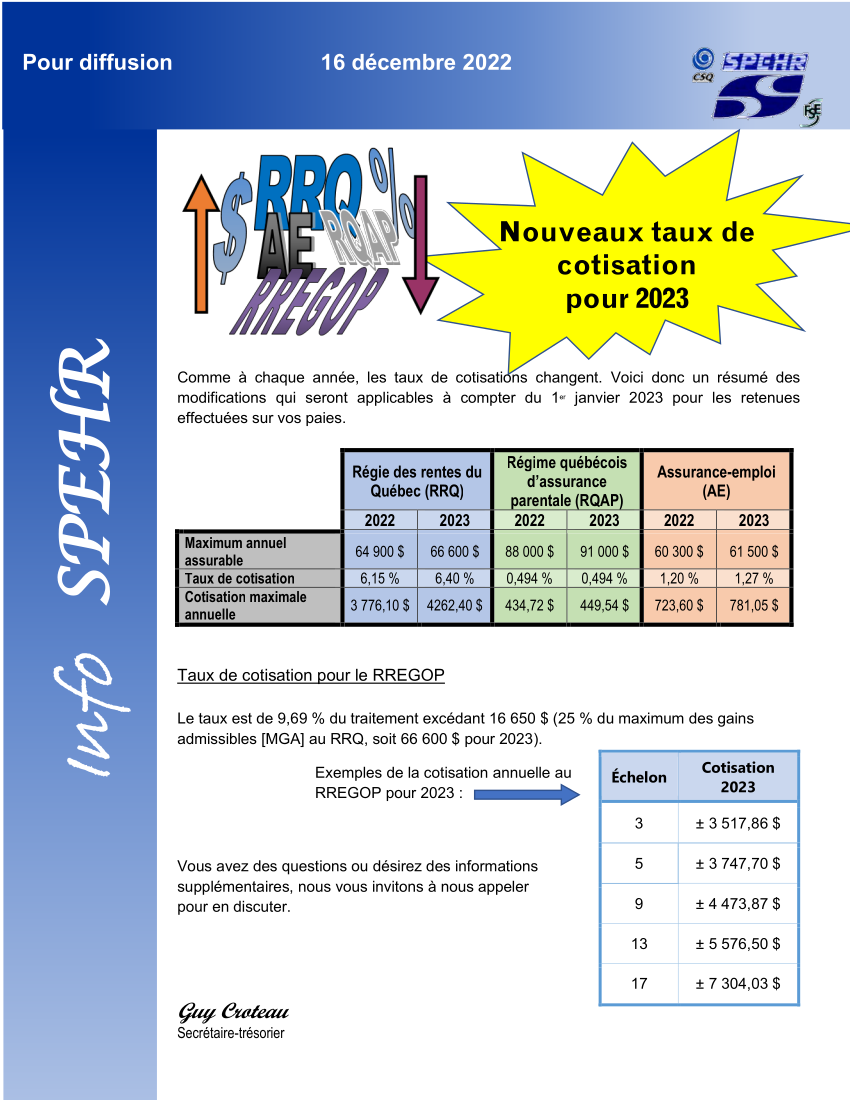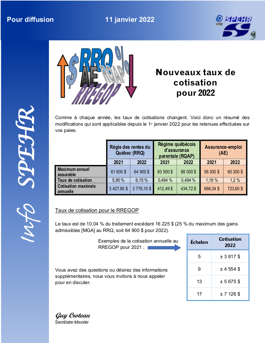 • Cotisations – Taux et maximum
